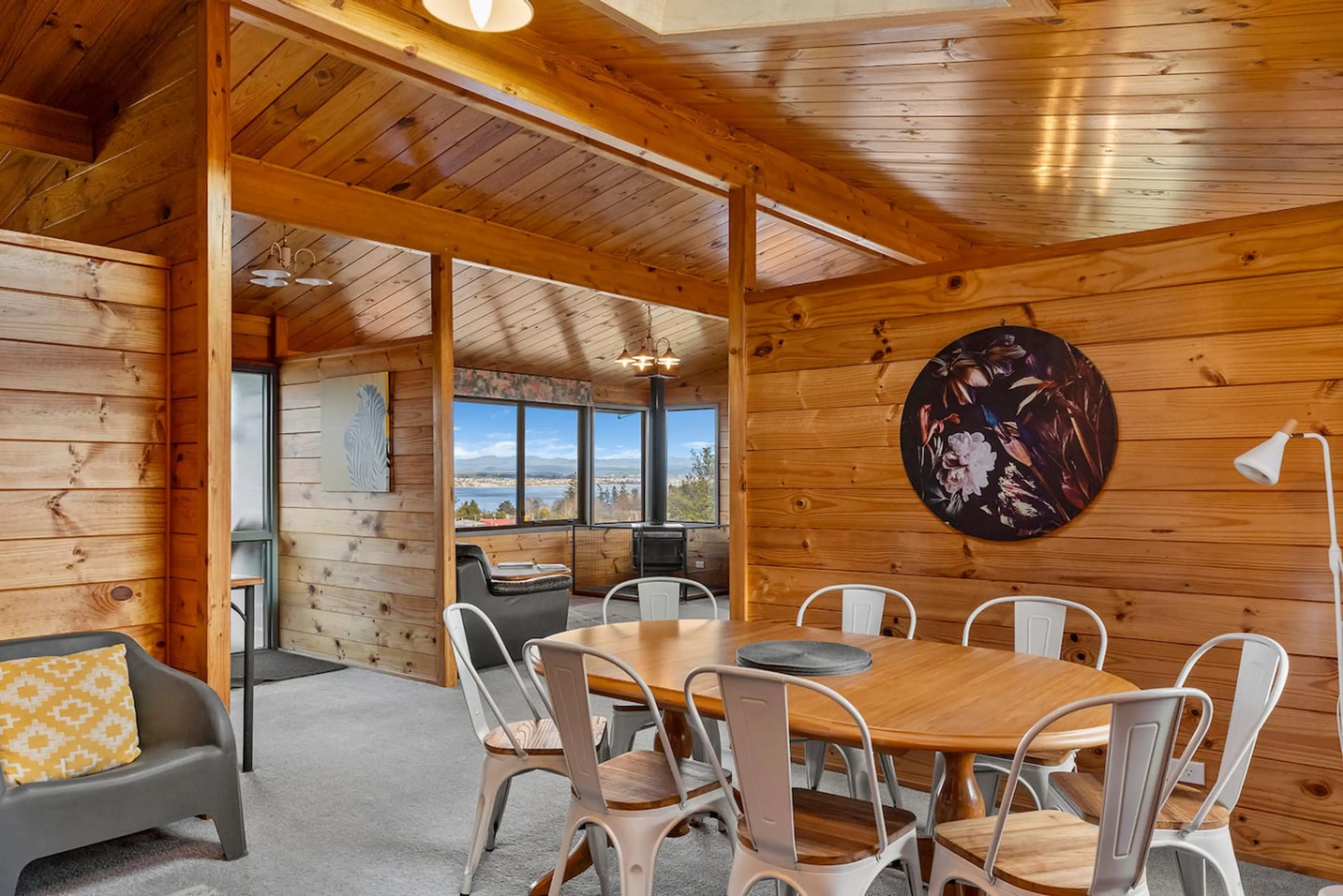 Enjoy stunning lake views from this spacious Acacia Bay retreat, perfect for families or groups up to 8. This 3-bedroom, 2-bathroom home features an open-plan living area with large windows overlooking Lake Taupō, plus a separate family room. The fully equipped kitchen, dining space, and cosy lounge...